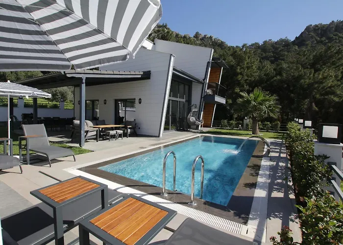 Mathörna, samt te-/kaffebryggare finns tillgängliga för gästernas bekvämlighet. Gästerna kan också använda kylskåp, ugn och köksredskap för att förbereda sin egen måltid. Bondjuk Restaurant, som erbjuder turkiska rätter, ligger ungefär 7 minuters promenad bort. Gästerna kan enkelt nå Dalaman flygplats, som ligger 115 km från villan. Boendet inbjuder gästerna att koppla av vid en utomhuspool eller njuta av vattensportaktiviteter i området.